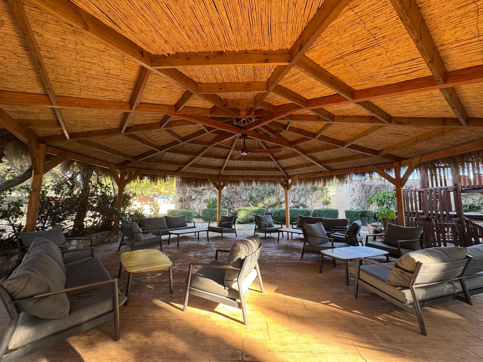 Como su nombre indica, este espacio destaca por su abundante vegetación, creando un ambiente fresco y relajante. Ideal para disfrutar bajo la sombra de un pino, degustando nuestras tapas de temporada o saboreando un cóctel servido desde el chiringuito, mientras los más pequeños se divierten en la plaza infantil. El jardín, con capacidad para 90 comensales, cuenta además con una palapa de estilo bohemio chic que aporta un toque único y elegante, perfecto para reuniones familiares, comidas informales o tardes de verano inolvidables.