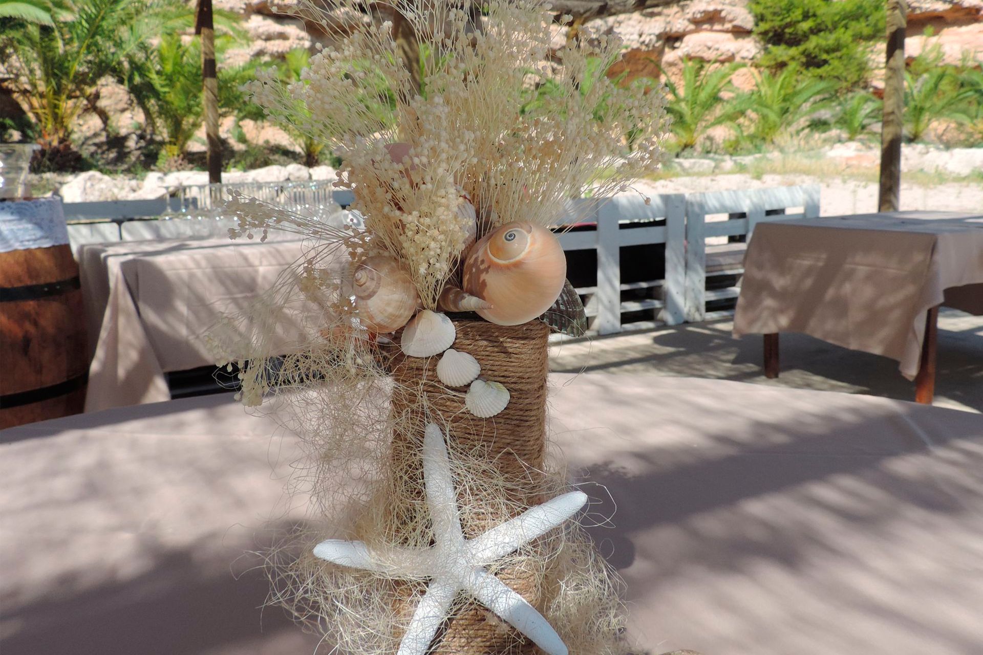 Espace – Plage de Calafat: Les Veles vous offre la possibilité d’effectuer la cérémonie à quelques mètres de la mer, sur une plage de sable fin et d’eau cristalline, protégée par une imposante falaise. Sur la plage, nous pouvons offrir différents services pour que les invités et les mariés puissent profiter de cette union rêvée: cocktail de bienvenue, pica pica … et ensuite vous pouvez aller dans les différentes salles pour terminer le banquet.
